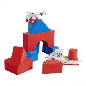 Gebruik de boot en de helikopter om verhalen en spelletjes samen te stellen.