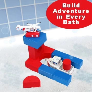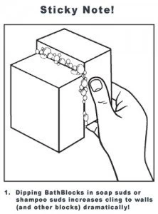 De stenen drijven op water en plakken als ze nat zijn met zeepsop, zodat ze kunnen worden gebouwd en gestapeld zoals het kind zich voorstelt.