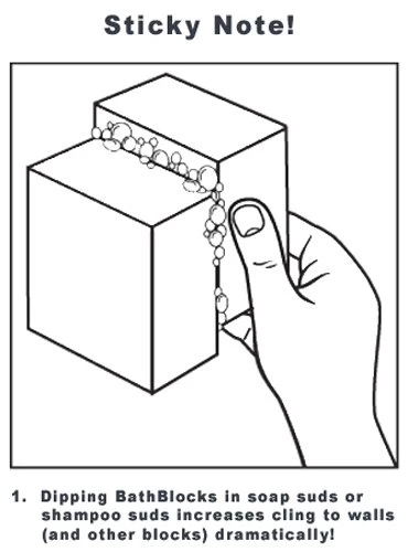 Trek de boot door het water en de schuit volgt. Zoals bij alle sets van BathBlocks plakken de blokjes aan elkaar wanneer ze nat worden.