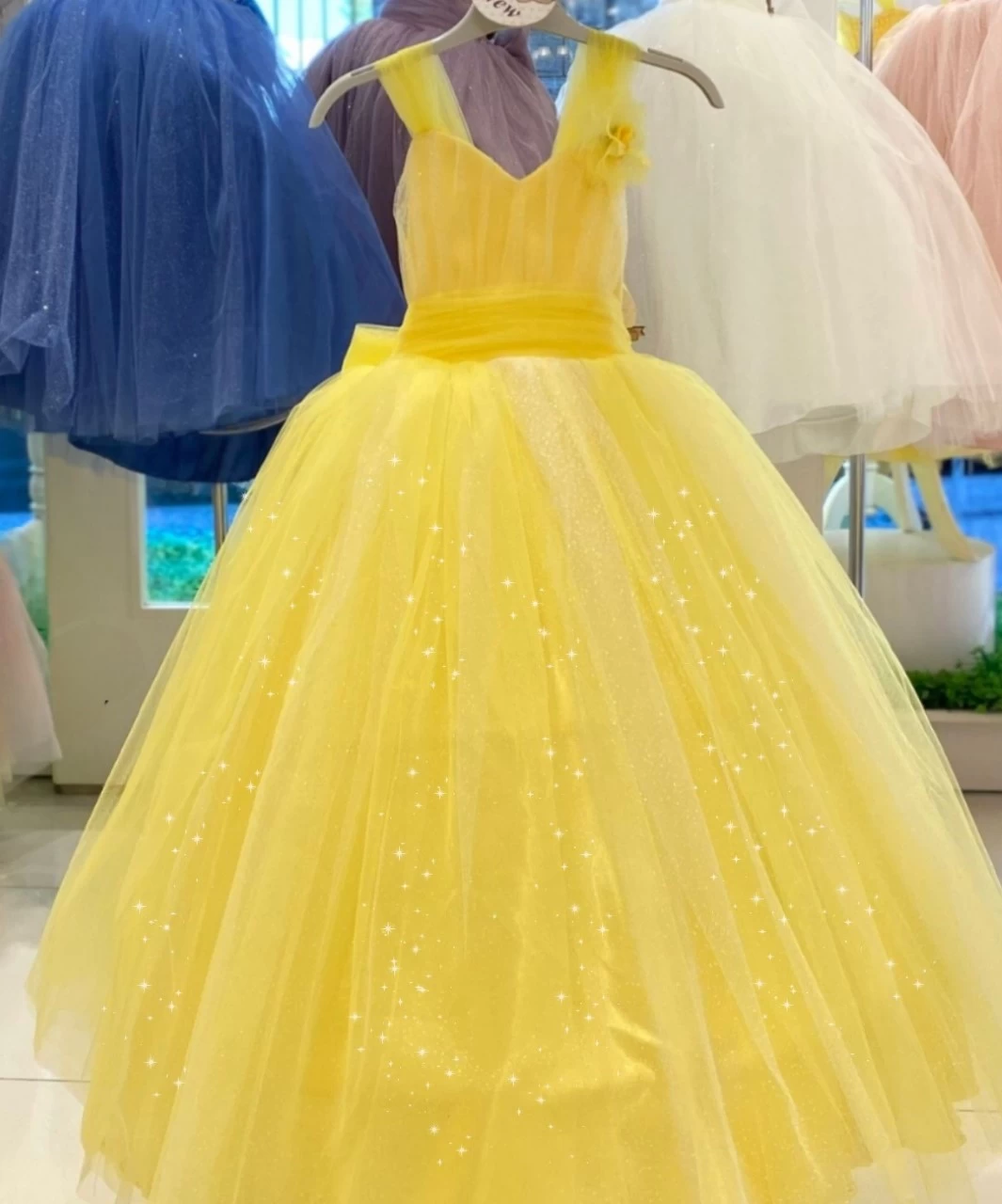 De jurk is prachtig mooi wijd en heeft prachtige afwerkingen aan de voorkant en achterkant. De jurk is 4 laags en heeft een hoepel aan de binnenkant van de jurk. Hierdoor zal de communie jurk – bruidsmeisje jurk niet te zwaar zijn.