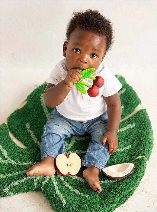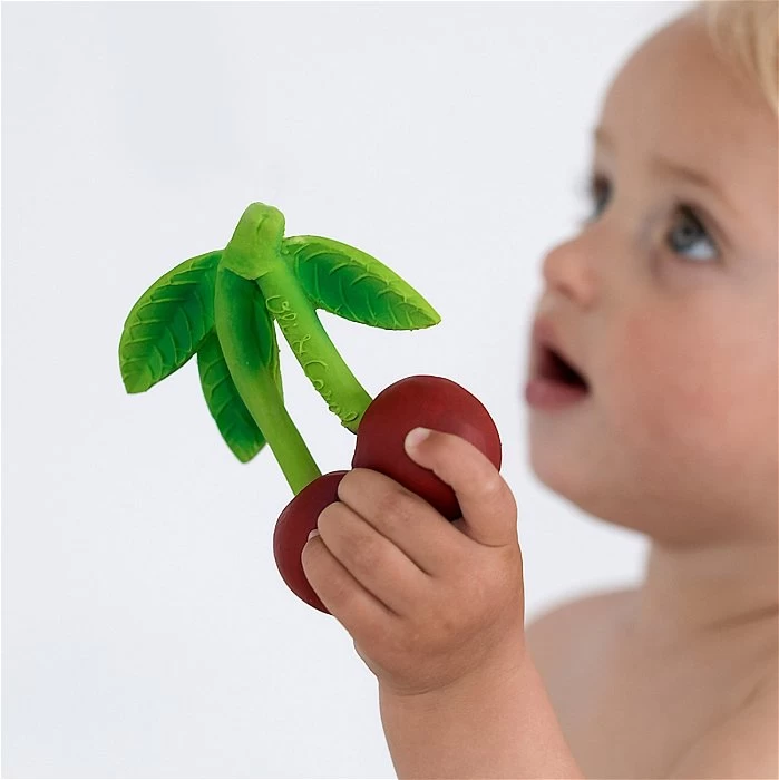 Heerlijke kersen die niet stuk gaan. Leuk bijtspeeltje dat pijnlijk tandvlees bij doorkomende tandjes verlicht.