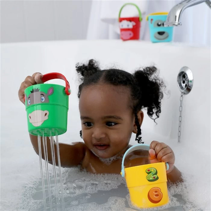De vier emmers zijn super om mee in de badkuip te spelen, en maakt de bad tijd misschien wat aantrekkelijker voor je kind. Vul de bad tijd met plezier en leren.