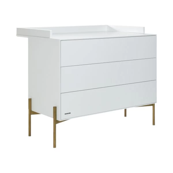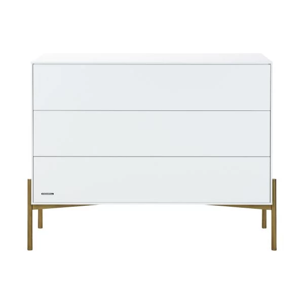 De Kidsmill Boutique Commode Wit / Bras is een stijlvolle kast voorzien van goudkleurige pootjes. De commode is perfect te combineren met andere meubels van de Boutique wit / bras serie. Verder beschikt de commode over 3 ruime laden met voldoende opbergruimte en is voorzien van het push-open systeem.