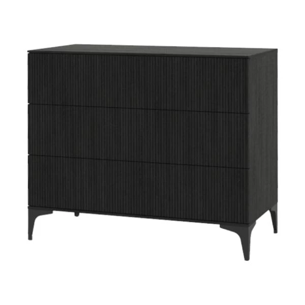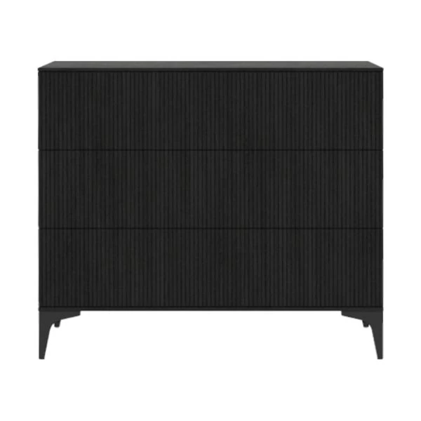 De Kidsmill Levi Commode Zwart Eiken kenmerkt zich door de combinatie van een landelijke en tegelijkertijd ook strakke stijl. De commode is gemaakt van hoogwaardig MDF en plaatmateriaal gecombineerd met een echte eiken fineerlaag. Daarnaast beschikt de commode over voldoende opbergruimte. De verfijnde groeven in de fronten, samen met de metalen zwarte pootjes geven de commode een frisse moderne look. Verder zijn de lades van de commode voorzien van een push-to-open en een soft-close systeem
