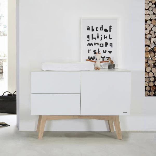 Met de babykamer Sixties haal je stijl en design in huis. De meubels van de Babykamer Sixties zijn strak en tot in de kleinste details afgewerkt. De witte delen zijn gemaakt van hoogwaardig MDF en plaatmateriaal en de blanke pootjes zijn gemaakt van eikenhout. Alle bewegende delen zijn voorzien van het handige “Push open” systeem. Bij het ledikant wordt een peuterzijde meegeleverd. Met deze zijde kan je kindje (als het oud genoeg is) zelfstandig en veilig uit het ledikantje klimmen.