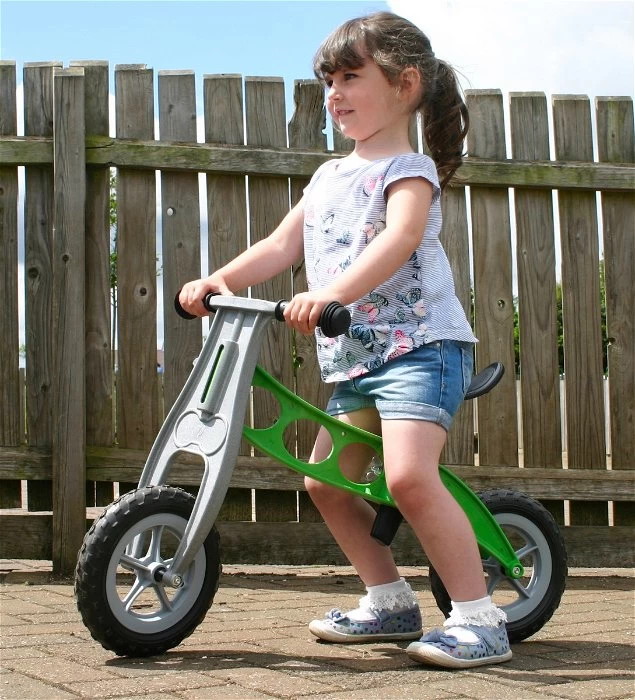 Je kind kan leren balanceren op twee wielen en de fiets leren besturen zonder het grote risico op vallen, want de grond is nooit ver weg. Het is gemakkelijk om je voeten neer te zetten als de moed zou falen.