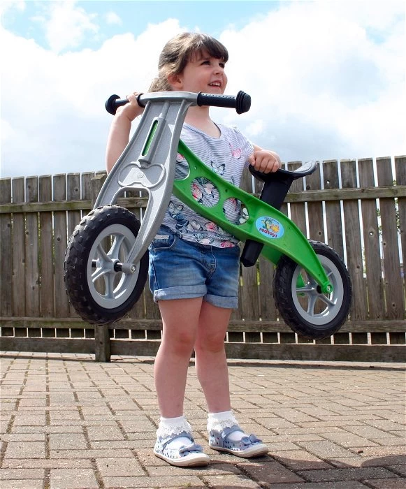 Deze loopfiets weegt slechts 2,2 kg en is tegelijkertijd zeer robuust en weerbestendig. Je hoeft je geen zorgen te maken over roest want hij is gemaakt van een ultra sterke mix van nylon en glasvezel en kan tegen een stootje op de speelplaats of in de tuin.