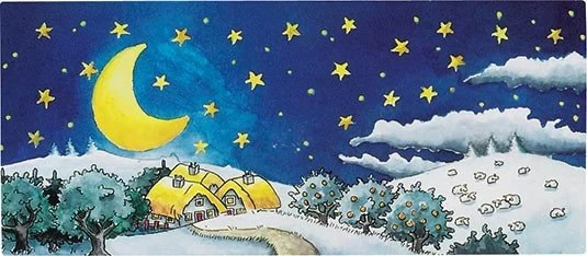 Er zitten vijf kartonnen decors bij, zodat de voorstelling zich in een koud winterlandschap, op het platteland, in het bos of in de stad kan afspelen.