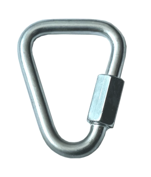 De karabijnhaak is van gegalvaniseerd staal en is goedgekeurd voor gebruik buitenshuis.