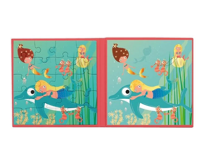 Dit puzzelboekjes bevat 2 puzzels met zeemeerminnen. Vanwege de slimme magneetfunctie, kan deze puzzel mee op reis en bijvoorbeeld in de auto gelegd worden.