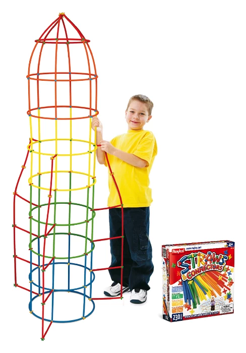 De meest fantasierijke constructies worden mogelijk met de rietjes, omdat ze flexibel zijn en zowel loodrechte, gelijkbenige als gebogen vormen kunnen creeren.