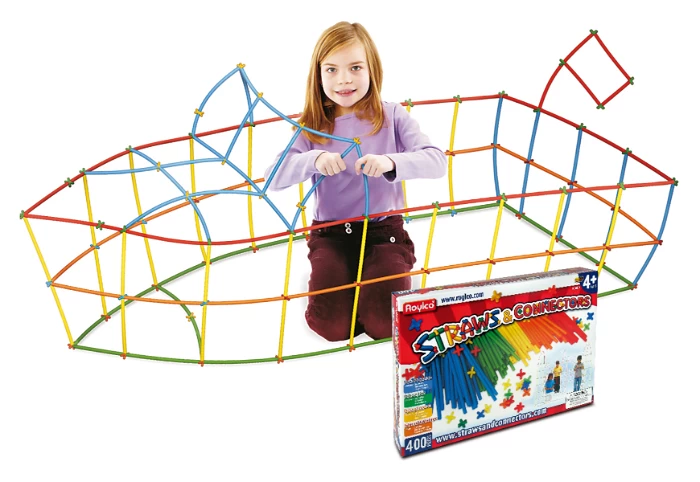 De meest fantasierijke constructies worden mogelijk met de rietjes, omdat ze flexibel zijn en zowel loodrechte, gelijkbenige als gebogen vormen kunnen creeren.