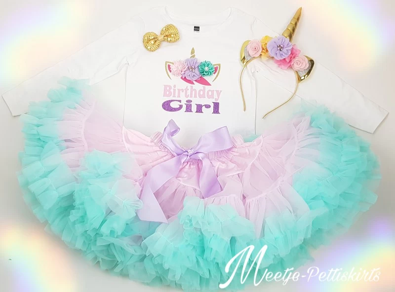 Een prachtige unicorn set van hele mooie kwaliteit. De petticoat kleuren zijn zelf door ons samen gesteld en geproduceerd met hoge kwaliteitsnormen. De prachtige petticoat set voor jarenlang draagplezier.