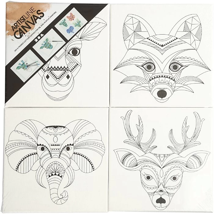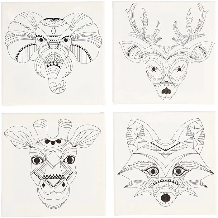 Verfcanvas Met Dieren – 20 X 20 Cm – 4 Stk