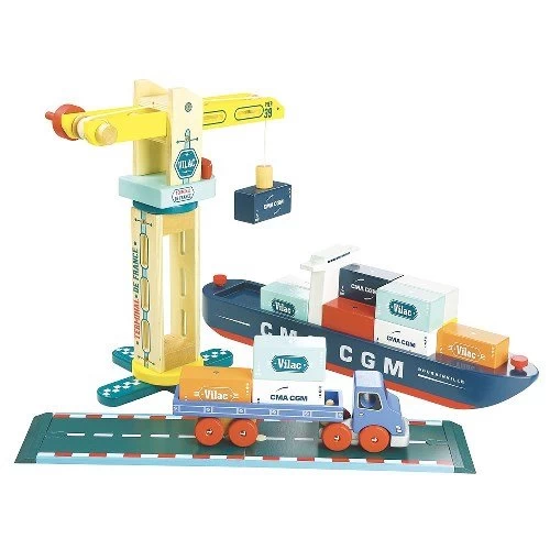 Materiaal: hoogwaardig hout + milieuvriendelijke oppervlaktebehandeling. Magneet aan het uiteinde van de hijskraan om te tillen..